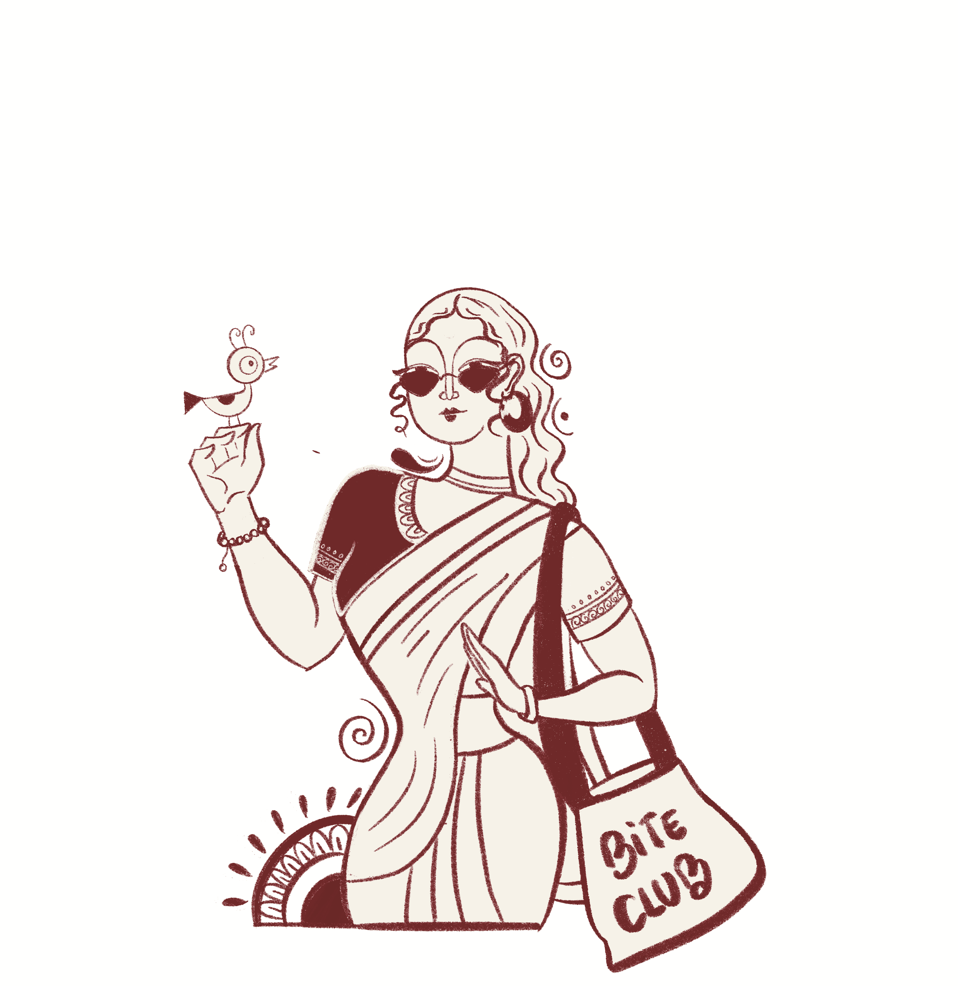 The illustration style reinterprets the visual language of Jamini Roy. Human faces follow a structured stylisation, while animals and birds are simplified with exaggerated proportions to introduce playfulness and memorability. Paired with calligraphic strokes this is a cultural but contemporary style.