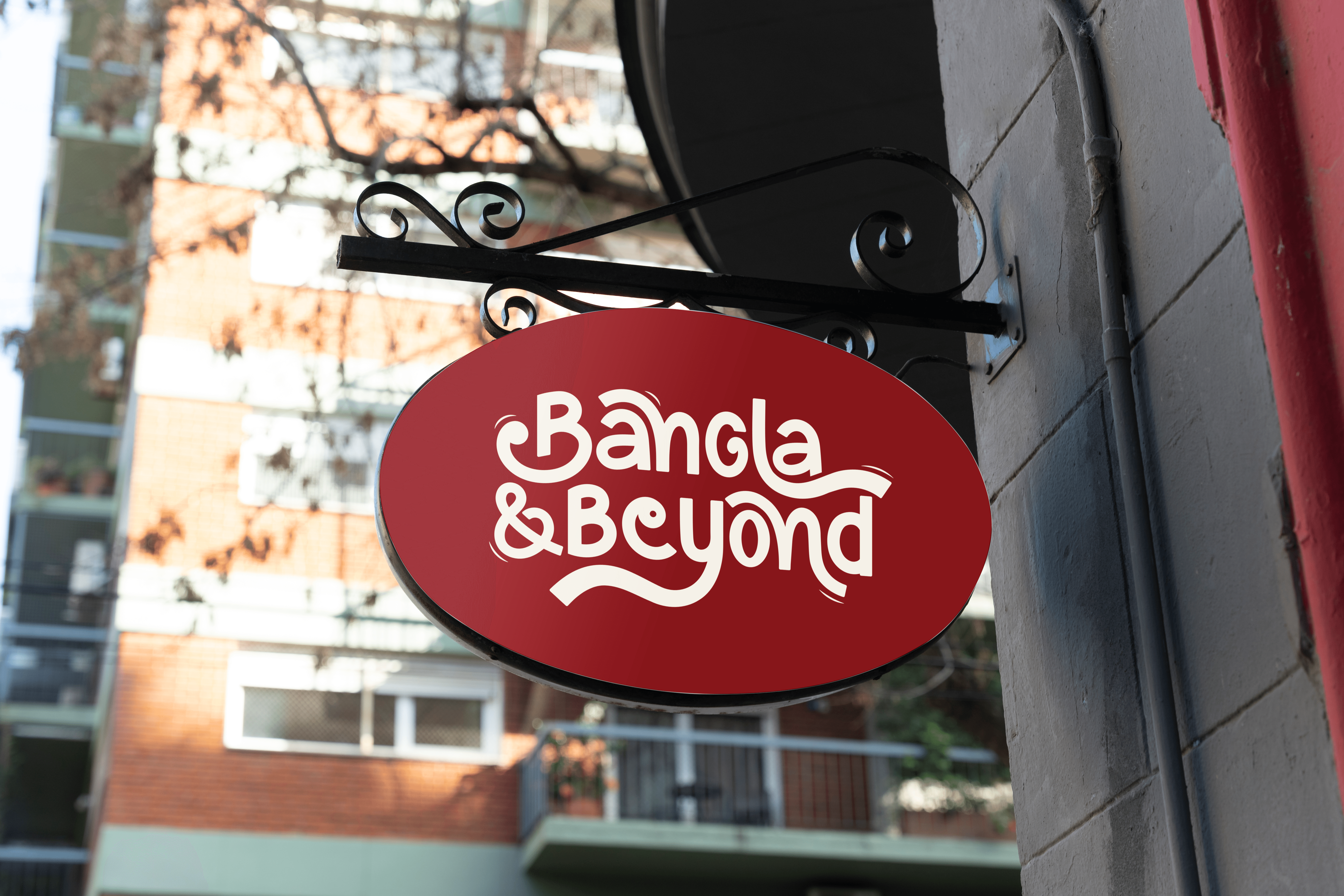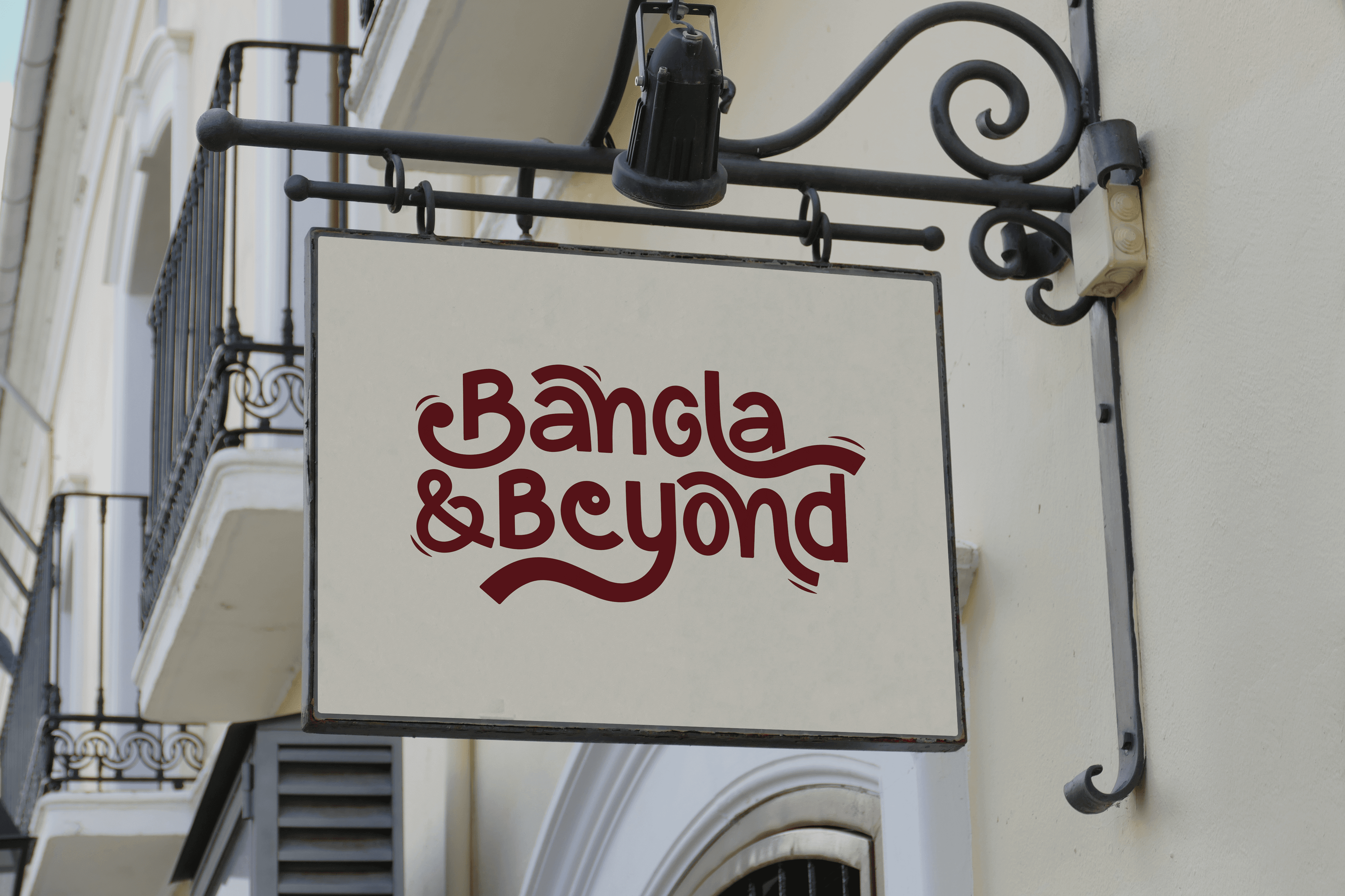 This direction explores a refined wordmark built around the name Bangla & Beyond. The shift from “Bong” to “Bangla” strengthens phonetic clarity and visual flow, creating a more balanced and cohesive typographic rhythm. The letterforms retain soft curves and ornamental gestures inspired by Bengali script, while maintaining modern proportions and legibility. The result is a confident, fluid identity that feels rooted in culture yet contemporary in execution.