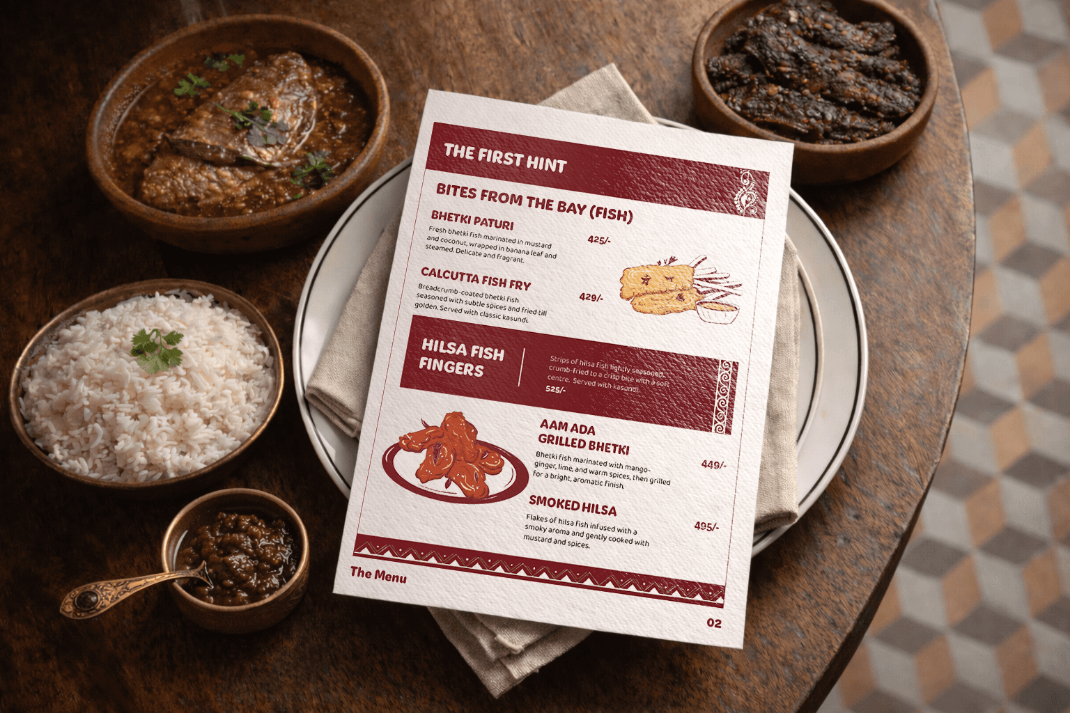 This informed a user-centered menu system designed to simplify navigation and enhance confidence. The menu functions as a guided experience, introducing Bangla cuisine with clarity, warmth, and structured storytelling.