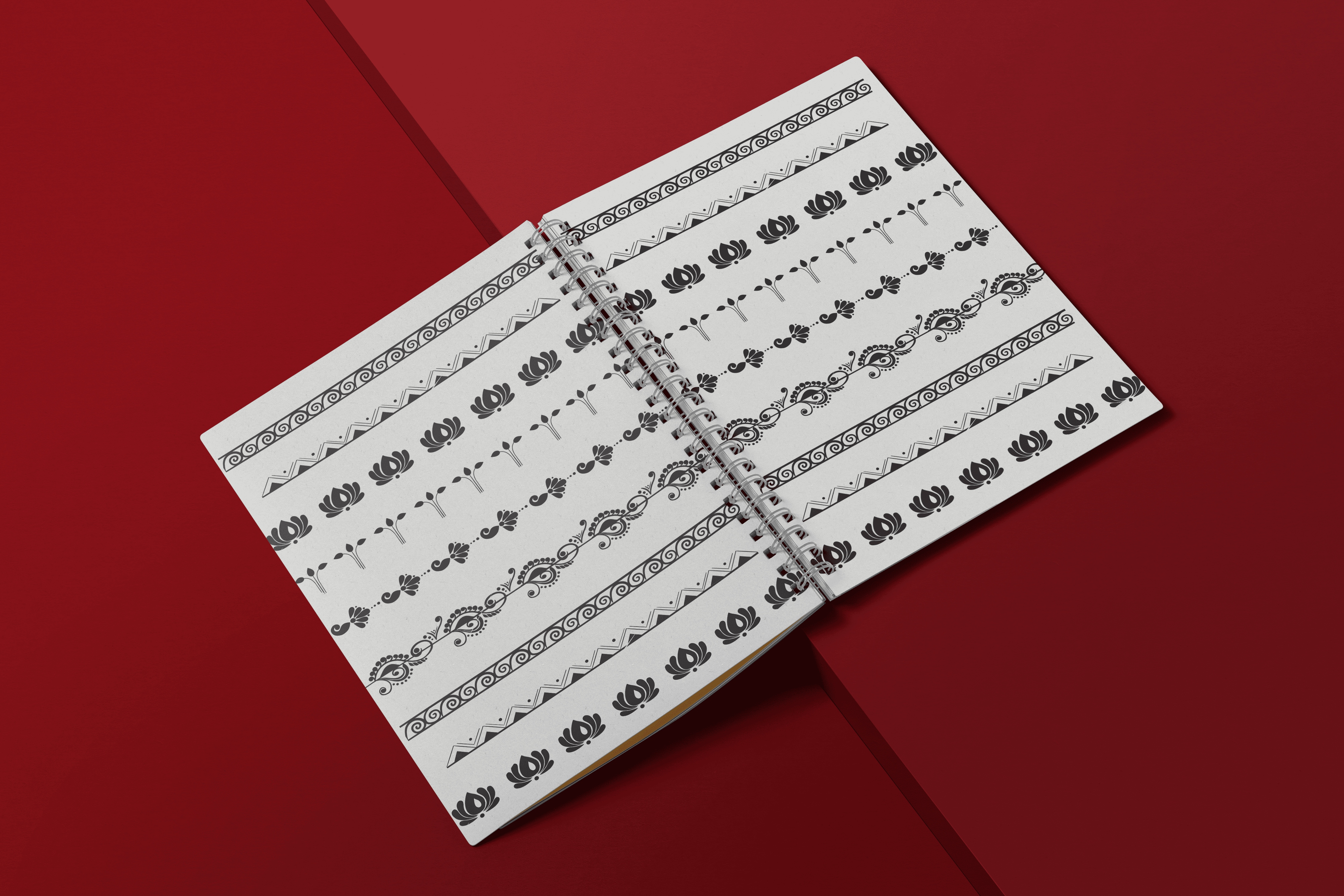 The brand motifs are inspired by Alpona, a traditional Bengali folk art known for its rhythmic and symbolic patterns. Reinterpreted in a minimal, contemporary style, these elements introduce a cultural layer to the identity while remaining versatile across applications. The motifs function as borders, accents, or integrated elements within illustrations, adding continuity and visual texture to the brand’s language.